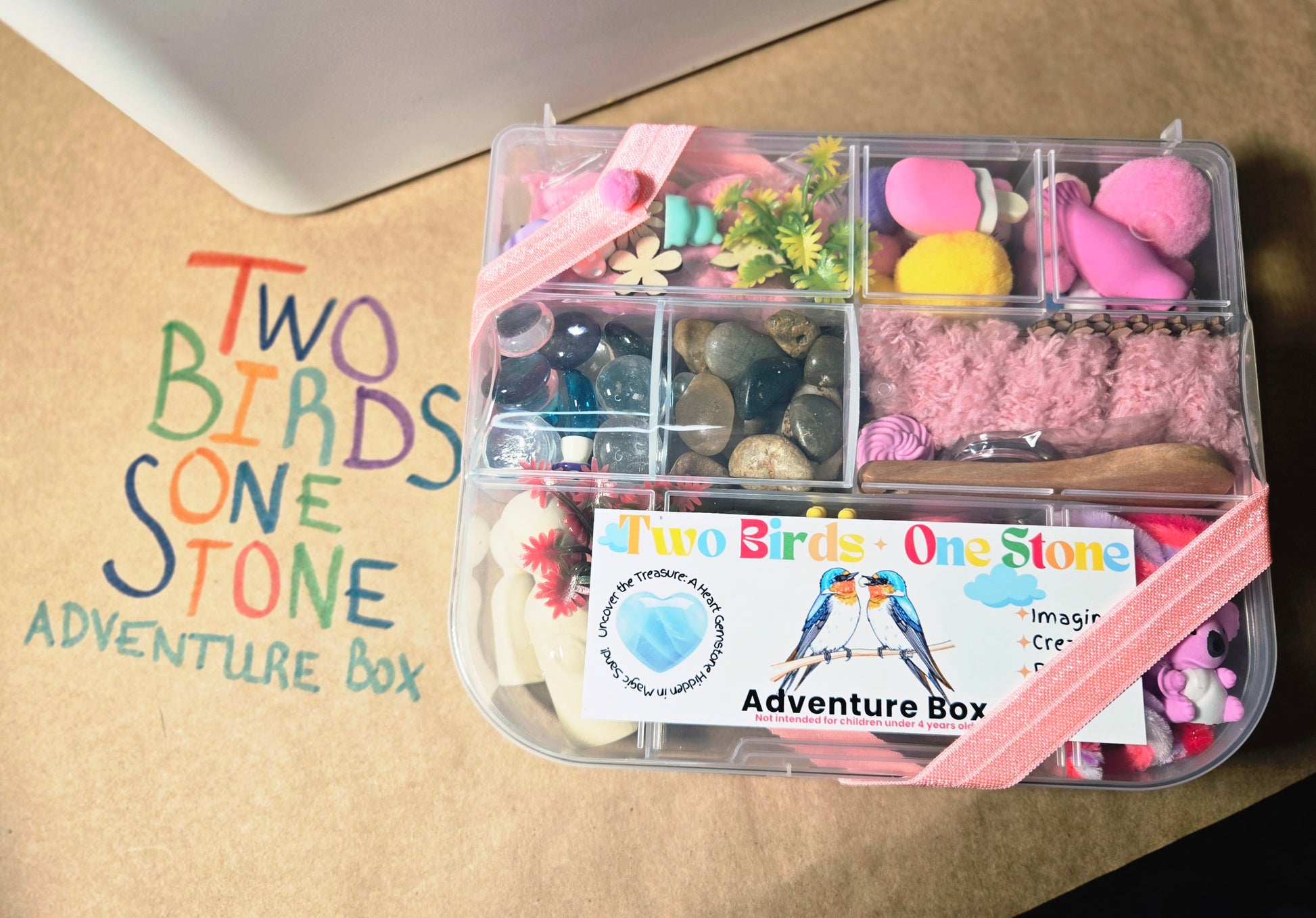 This product contains small parts, including rocks, trinkets, sand, magic sand, and play-doh. Small parts may present a choking hazard.